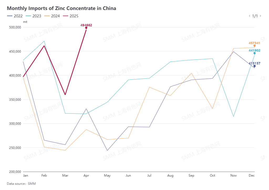 SMM estime que la forte augmentation mensuelle des importations de concentrés de zinc en avril est due aux raisons suivantes :