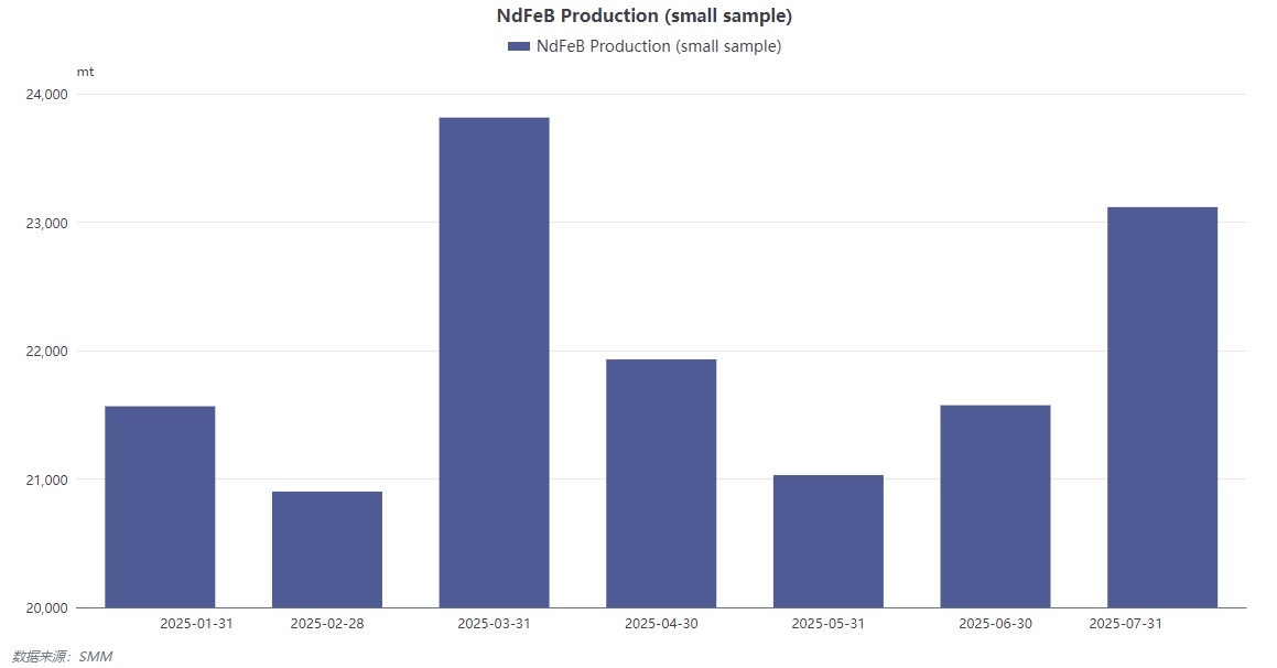 Dernière mise à jour du marché de SMM (30 juillet) : Prix des transactions principales pour l’oxyde de Pr-Nd : 531 500 yuan/t (hausse de 11 000 yuan par rapport à la veille), prix des transactions principales pour l’alliage de Pr-Nd : 645 000 yuan/t (hausse de 20 000 yuan par rapport à la veille). Outre l’oxyde de Pr-Nd et l’alliage de Pr-Nd, l’oxyde de Pr pur, l’oxyde de Nd pur, le métal de Pr et le métal de Nd ont tous connu des augmentations importantes dépassant 10 000 yuan/t.
