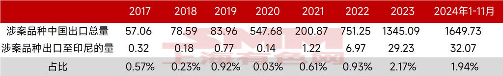 Pada 2017, Indonesia memulai investigasi peninjauan sunset kedua pada produk Tiongkok yang terlibat. Selama empat tahun berikutnya, volume ekspor produk yang terlibat ke Indonesia tetap rendah, di bawah 10 ribu mt, tetapi kemudian meningkat. Berdasarkan data dari 11 bulan pertama tahun ini, Tiongkok mengekspor 320,700 mt HRC ke Vietnam, naik sekitar 20,38% YoY (volume ekspor 2023 untuk periode yang sama adalah 266,400 mt). Tahun ini, total volume ekspor produk yang terlibat dari Tiongkok ke Indonesia sudah melampaui tahun lalu!
