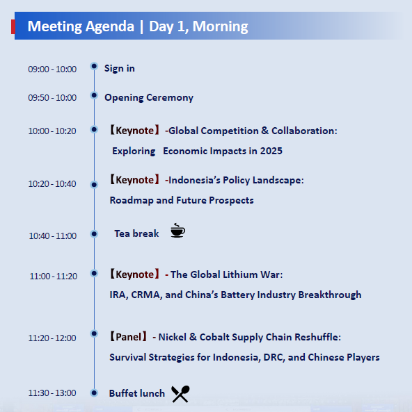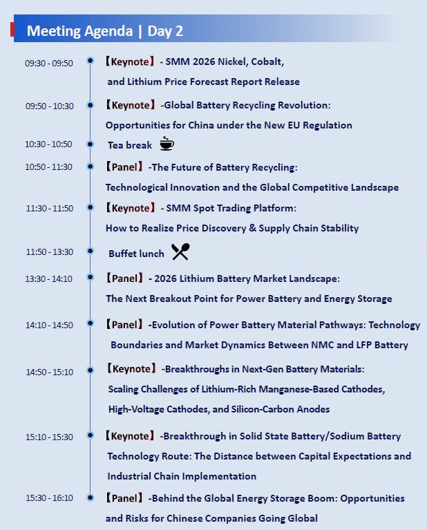 Dengan otorisasi dari Shanghai Institute of Technology (SMM), konferensi ini akan menerbitkan analisis tren pasar dan analisis harga bahan baku nikel, kobalt, dan litium, membantu perusahaan untuk mengikuti tren industri dan memahami perubahan dalam arus sumber daya global serta struktur penawaran dan permintaan. Area khusus untuk negosiasi kontrak jangka panjang dan tautan docking bisnis satu lawan satu akan disiapkan, menyediakan platform komunikasi yang tepat sasaran dan efisien bagi perusahaan hulu dan hilir, mempromosikan kerja sama praktis dan pengembangan terkoordinasi rantai industri.