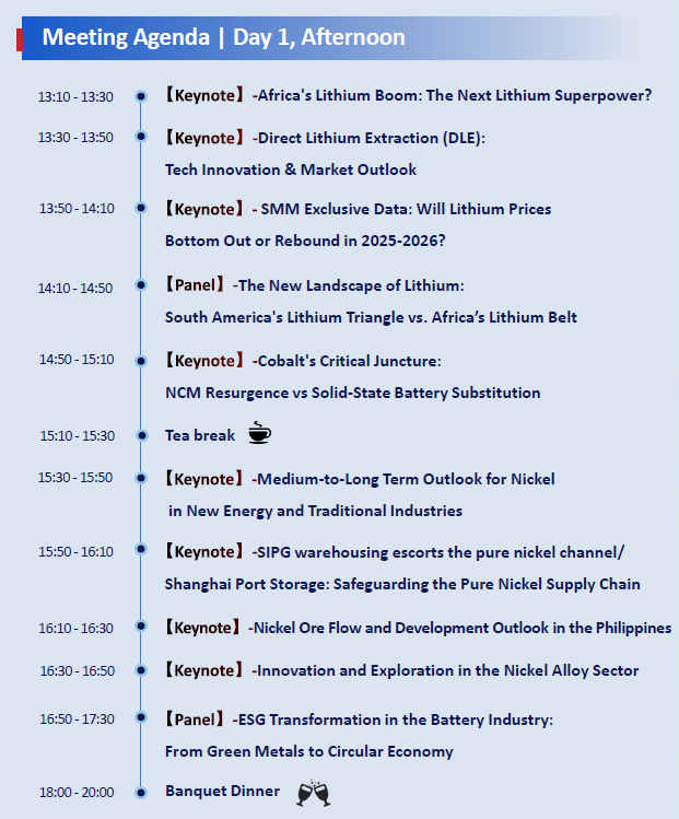 Konferensi Bahan Baku Baterai Lithium SMM 2025 (Li-ION BATTERY China 2025) akan diselenggarakan di Xiamen pada 20-21 Oktober 2025. Konferensi ini akan berfokus pada dinamika pasar dan mekanisme harga sumber daya nikel, kobalt, dan litium dari perspektif global, secara komprehensif menganalisis perubahan dalam lingkungan kebijakan internasional, ketidaksesuaian antara penawaran dan permintaan sumber daya, serta mengeksplorasi peluang transformasi industri yang dibawa oleh inovasi teknologi dalam bahan baterai.