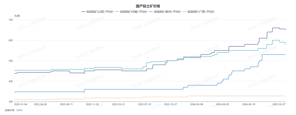 На этой неделе рынок внутреннего боксита в целом оставался стабильным. Однако из-за снижения цен на спотовую глинозем до низкого уровня некоторые предприятия с высокими затратами в провинциях Шаньси и Хэнань столкнулись с убытками. Цены на внутренний боксит находились под давлением и немного снизились.