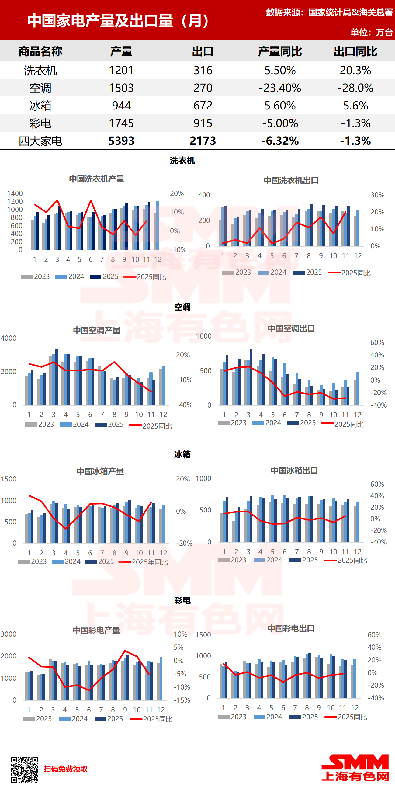В ноябре 2025 года Китай экспортировал 2,7 млн кондиционеров, снизившись на 28,0% в годовом исчислении; совокупный экспорт с января по ноябрь достиг 55,13 млн штук, снизившись на 2,9% в годовом исчислении.