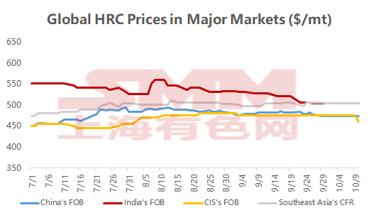 Trong các thị trường lớn trên toàn cầu, giá thép giảm 2-15 nhân dân tệ/mt trên cơ sở tuần này so với tuần trước, từ thứ Sáu trước kỳ nghỉ đến thứ Sáu sau kỳ nghỉ. Giá xuất khẩu thép của Trung Quốc chủ yếu bị ảnh hưởng bởi rào cản thuế quan, dẫn đến suy giảm tâm lý thị trường và do đó giá thép yếu hơn. Sự sụt giảm đáng kể nhất được thấy trong giá xuất khẩu từ Cộng đồng Các quốc gia Độc lập (CIS), với thị trường Nga là ví dụ điển hình. Nguyên nhân chính của sự sụt giảm giá là do nhu cầu từ các thị trường bán hàng truyền thống, như Trung Quốc và Thổ Nhĩ Kỳ, đặc biệt là thị trường Trung Quốc, nơi hầu hết các giao dịch bị tạm dừng do kỳ nghỉ. Do đó, các nhà cung cấp Nga buộc phải giảm giá để hoàn thành đơn đặt hàng tháng 11 trong khi tích cực tìm kiếm các khu vực khác, như Ấn Độ. Tuy nhiên, sự chấp nhận báo giá trên thị trường Ấn Độ nói chung thấp, dẫn đến giá tổng thể thấp hơn. Trên thị trường châu Âu, việc áp dụng Cơ chế Điều chỉnh Biên giới Carbon (CBAM) và việc giảm hạn ngạch nhập khẩu sắp tới dự kiến sẽ làm thay đổi cảnh quan thương mại giữa người mua và các nhà cung cấp trong nước và nước ngoài. Tuy nhiên, do thiếu rõ ràng về các quy tắc thị trường mới, sự không chắc chắn vẫn tiếp tục ảnh hưởng đến tâm lý thị trường, cùng với nhu cầu hạ nguồn yếu, dẫn đến giá giao dịch tiếp tục suy yếu. Nhìn về phía trước, khi hoạt động thương mại sau kỳ nghỉ tại Trung Quốc trở lại bình thường, giá xuất khẩu CIS dự kiến sẽ được cải thiện. Tuy nhiên, do những bất ổn từ nước ngoài gia tăng, giá cả tại Trung Quốc có khả năng sẽ tiếp tục trì trệ. Hầu hết khách hàng hạ nguồn tại Đông Nam Á hiện đang có tâm lý chờ đợi và quan sát, khiến giá cả duy trì ở mức trì trệ, với nguy cơ giảm nhẹ trong ngắn hạn.